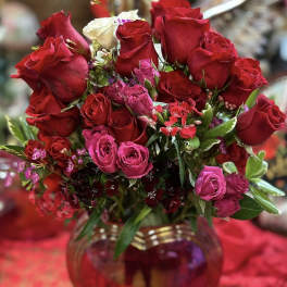 Price: $174.95 1 DOZEN HEART GARDEN ROSES WITH 5 LARGE WHITE CALLA LILLIES IN A GOLD DIPPED VASE Product Tags: Next-day Delivery